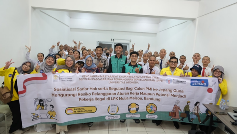 Bandung, 18 Februari 2026 – Tim Pengabdian Masyarakat Prodi Kajian Wilayah Jepang-Sekolah Pascasarjana Pembangunan Berkelanjutan dari Universitas Indonesia melaksanakan kegiatan pengabdian masyarakat di LPK Mulia Meisou Indonesia, Bandung, pada hari Rabu, 18 Februari 2026. Acara ini dilaksanakan dengan mengusung tema “Sosialisasi Sadar Hak serta Regulasi bagi Calon PMI ke Jepang guna Mengurangi Risiko Pelanggaran Aturan...